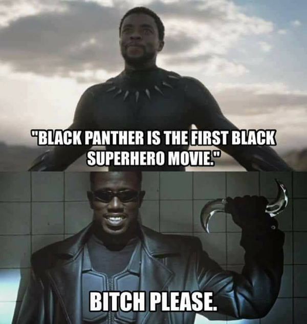 What I also don't recall is people making these initial statements that these memes are built on. I do not remember anyone saying "there has never been a female superhero film," "there has never been a superhero film with a lead of color," or other statements that memes like these utilize. When someone states this, the people who post them often claim that they have. Fine. However, this again misses the point.