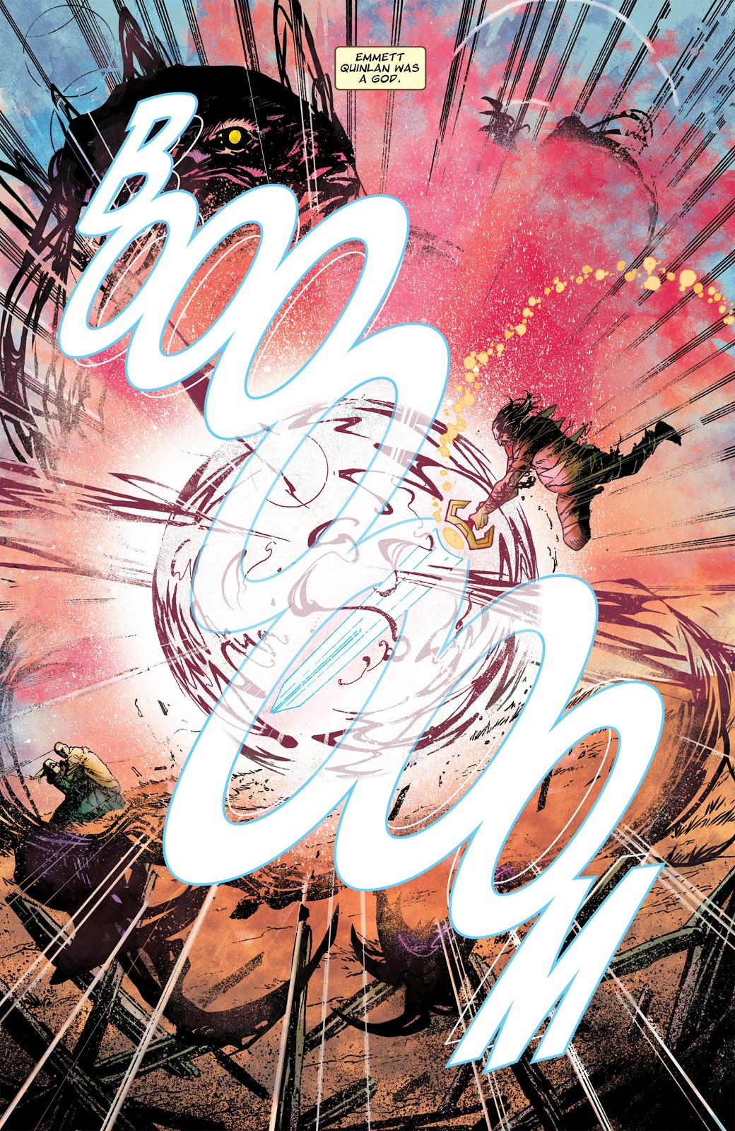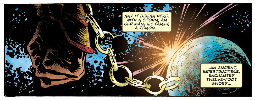 The family is called to the old Quinlan family house to check in on Emmett, as he left the property and had become violent with police officers trying to get him safely home. Tension is extremely high as the question of "what's to be done about Emmett?" looms over the family. What's more, the family home is suddenly destroyed by a tornado, bringing with it a demon from elsewhere -- another world, outer space, perhaps even another dimension -- and a sword to destroy it. But the sword isn't just any sword, it's the God of Blades, Valofax, and not only is it a wielder of incredible power, it's chosen Emmett for reasons unknown, and as long as the blade is in his possession, his clarity returns. Oh, and it can talk.