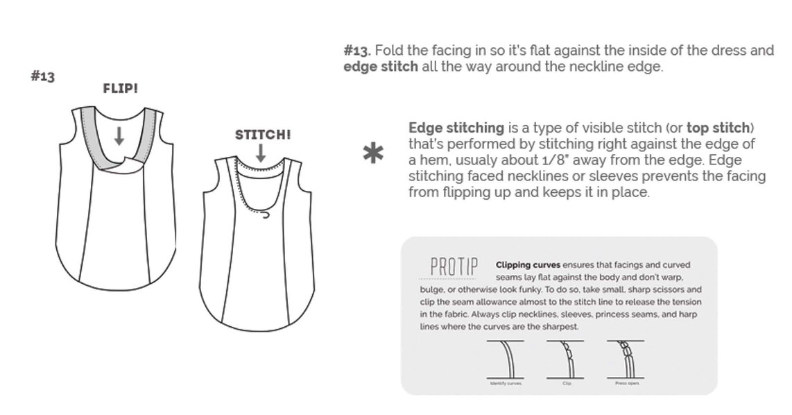 The corner of the pattern gives a link to a PDF document you can look at online, or print out, to use with your pattern. I think this is a really awesome idea, because it saves a few trees, and makes your instructions a little more portable. I mean they're portable to begin with, but now they're ON MOBILE! The instructions themselves are written in a simple, conversational tone, and stray away from using overly-technical language, but when they do, they actually do a pretty good job of explaining what they mean and giving further instruction. For example, thanks to Hey Cut Sew, I now know what French seams actually are, and how to do them! Here's an example of the gist of how their patterns go; I'm not going to show you the whole thing because gosh darn it, I don't want to give away too much!