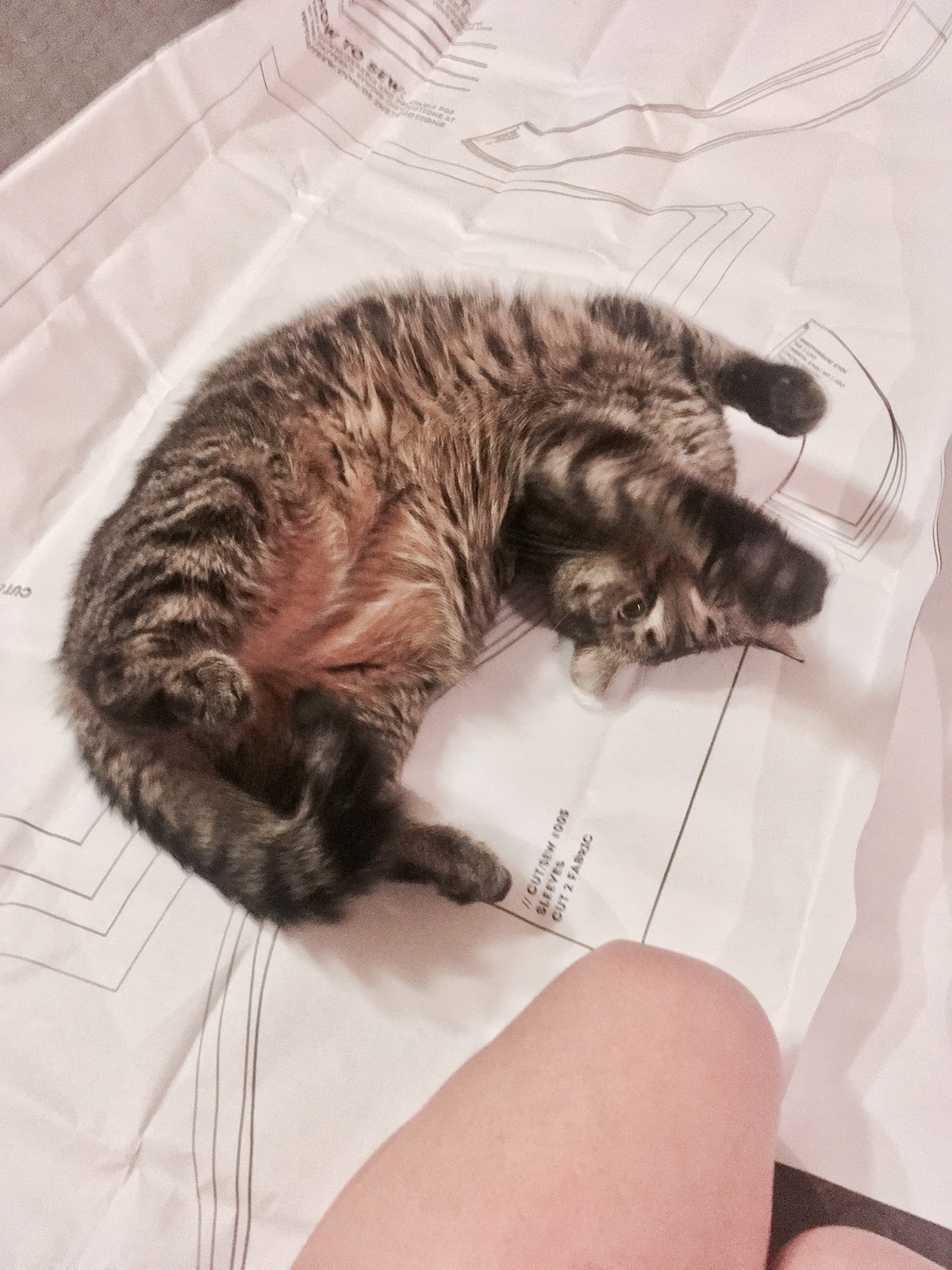 So you have your measurements, and you're ready to move on to the pattern itself. I don't know about y'all but my cats LOVE to crawl on my patterns while I'm trying to measure and cut. And that tissue paper is noncompatible with cat claws.