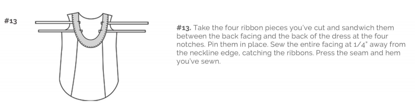 Also they included a certain yardage of ribbon needed for the back of the dress, and at one point it referred to your "four pieces of ribbon". I ended up just taking the total yardage and dividing it by four, again, not a big deal, but it had me searching back through the pattern, wondering if I'd misread something somewhere, where it told us to cut the ribbon; and if I missed that, what if I'd missed something else important?! These are minor nitpicks, but I figure worth mentioning.