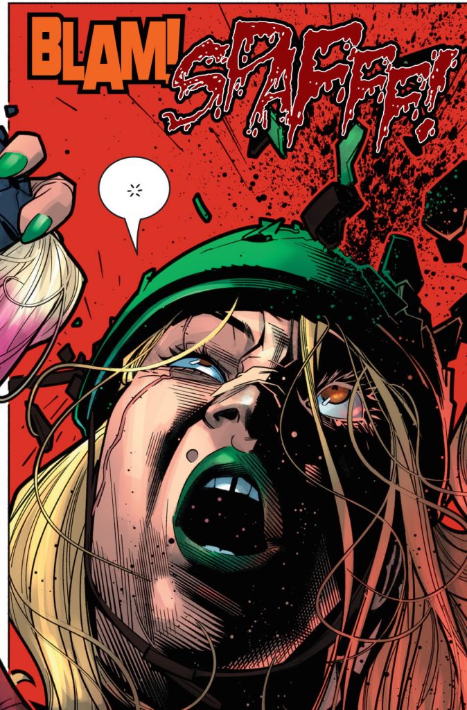 “Mad Love” is the story that summarizes the pair’s union and depicts their backstory that every version since has worked around, up until The New 52. And this issue of Harley Quinn either redraws and re-contextualizes or flat-out blatantly reuses panels or concepts originally presented in Mad Love. These panels are some of the most interesting and engaging pages of these issues, and that’s the problem, because these stories didn’t exist in this canon until now. Harley in her nightie with bleached skin doesn’t seem unusual, but it depicts a version of this character, and her relationship, that carries more depth and subtlety than this series has offered. Not only do these panels serve only as a reminder of what both was and what this series struggles to be, many of them are improbable or impossible in the canon of this series. This is not only a problem in writing, but serves to demonstrate what fans want against what they choose to give us. These panels serve to do little more than to bait readers with a strong reaction to the original stories, with either affection or disdain. If references to other stories, stories that the series has mostly ignored or worked around in unsubtle ways, is the most appealing part of your current series, that series has, no pun intended, issues.
